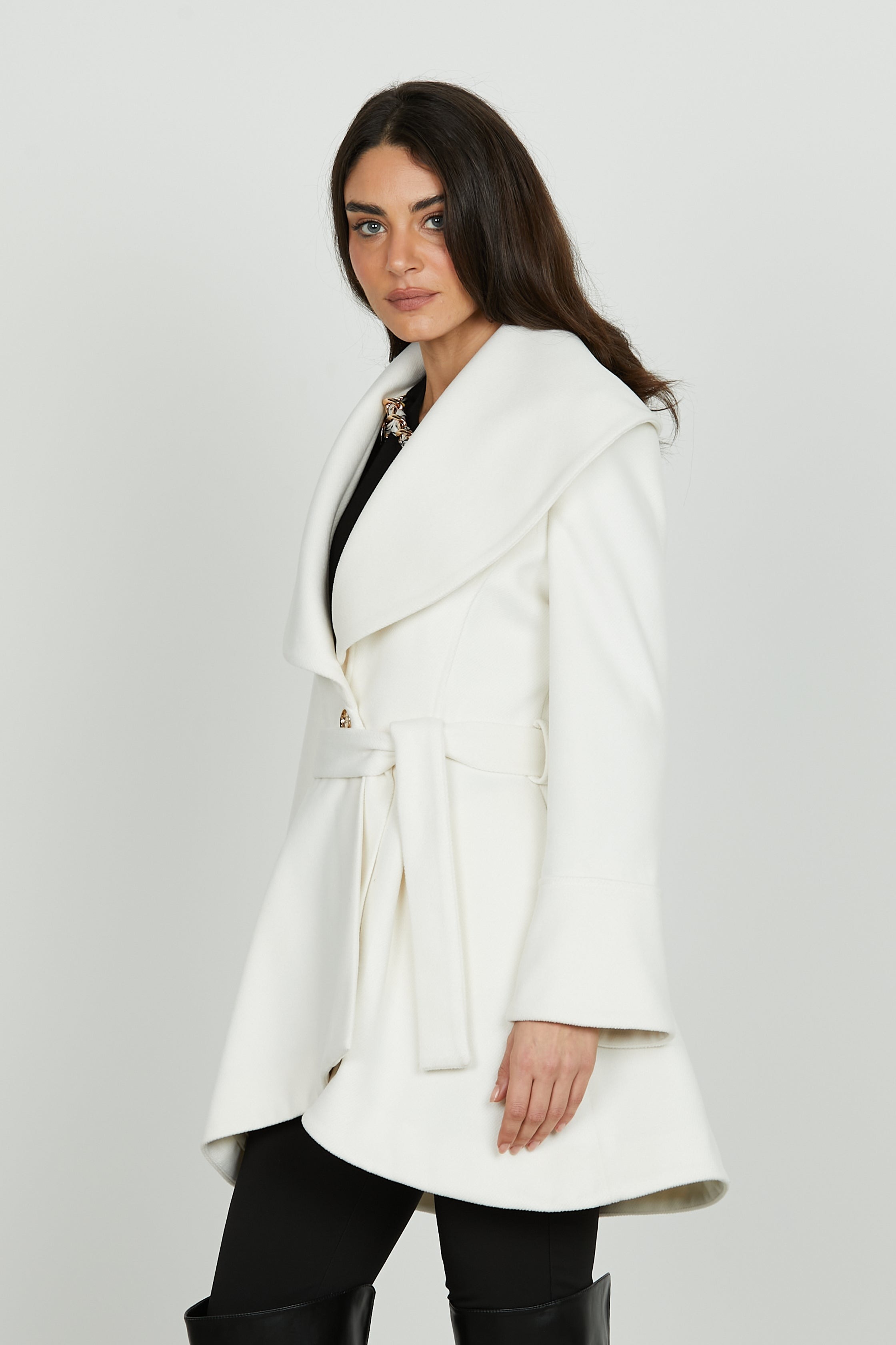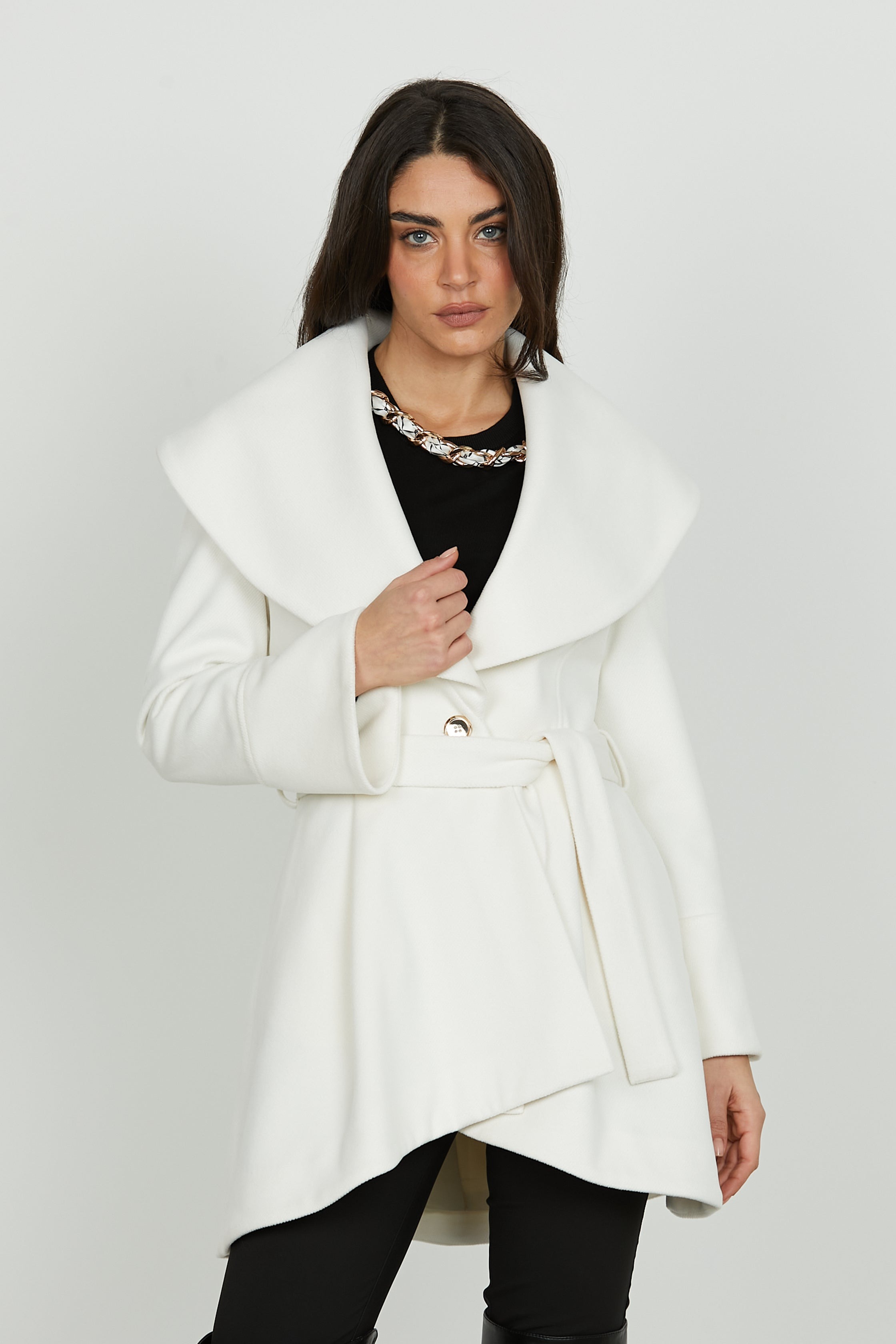 Abrigo ARUBA de RELISH manga larga con cuello chal y cinturón