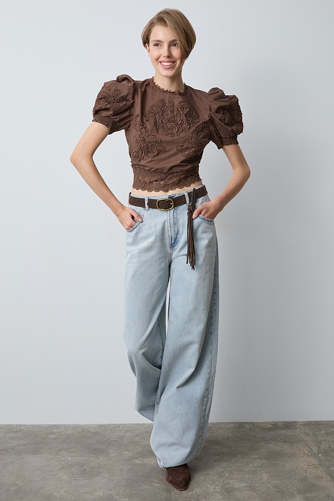 Blusa de encaje con hombros abullonadosDE BSB MODELO 055-210019