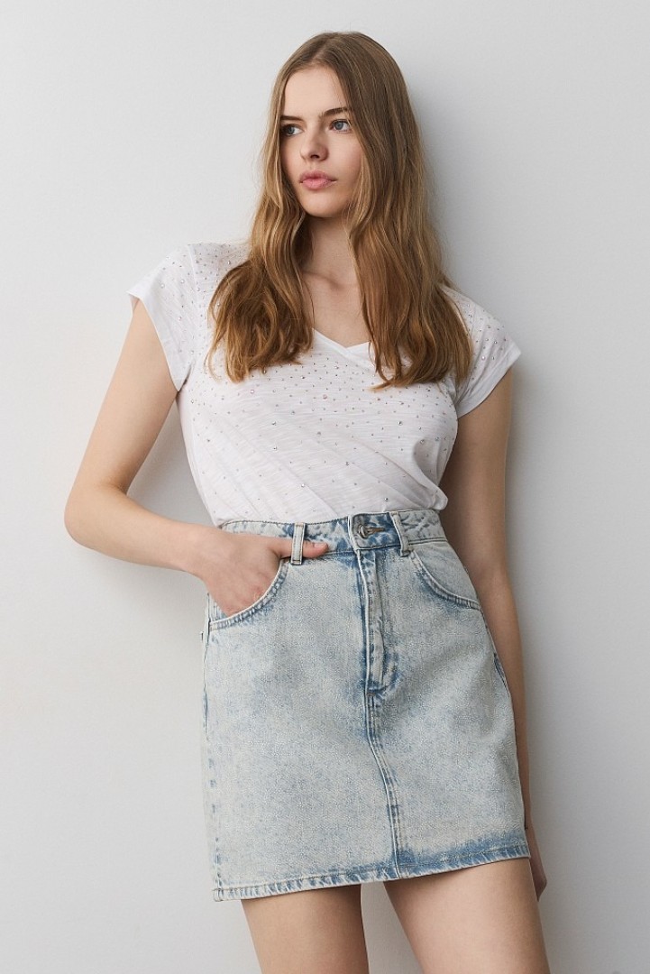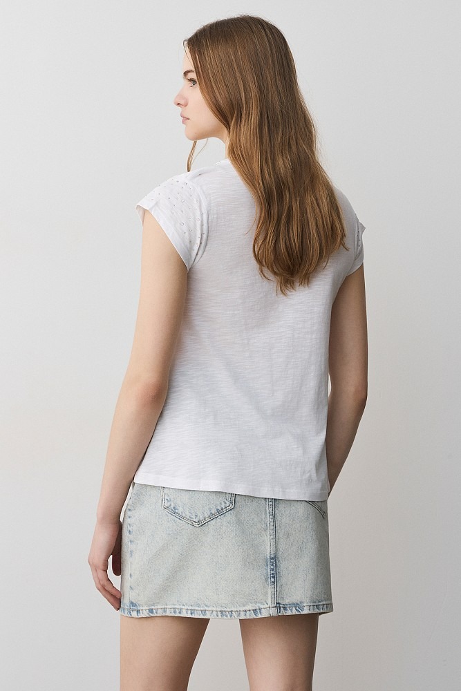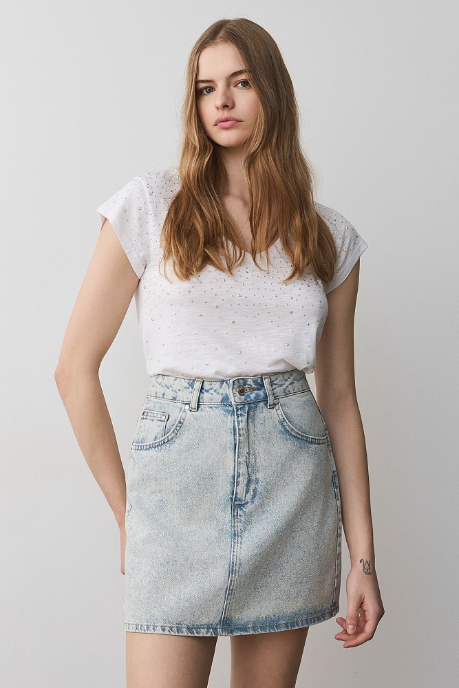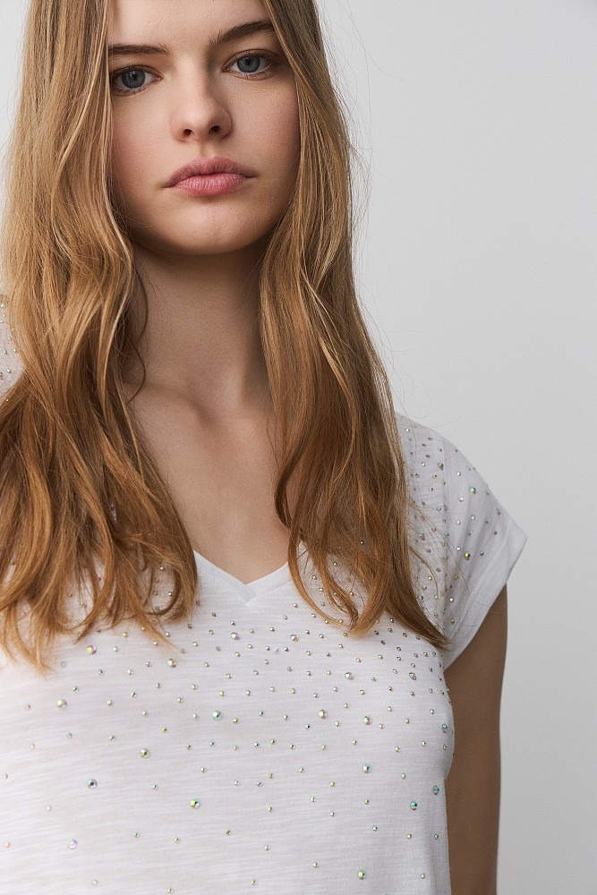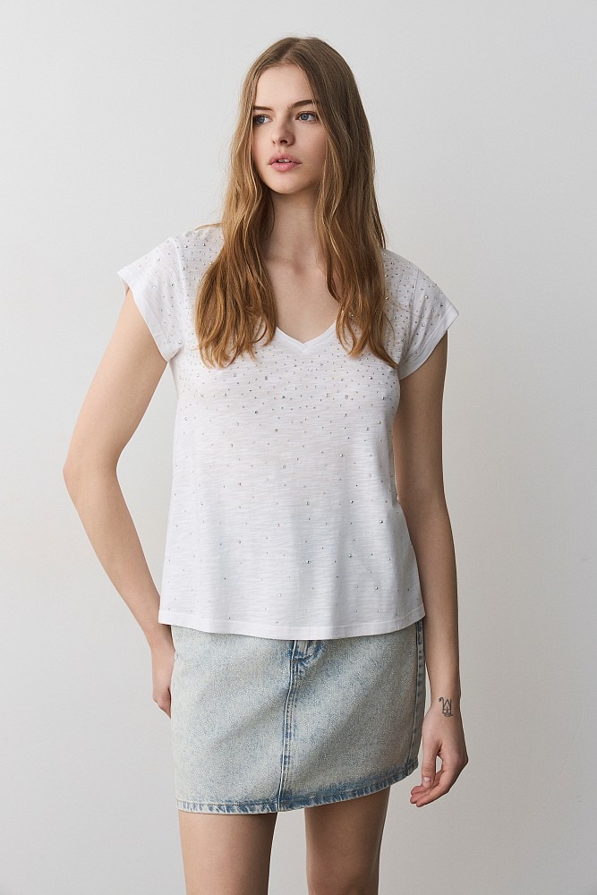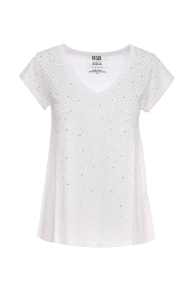 Camiseta de cuello en V con pedrería DE BSB MODELO 055-210005