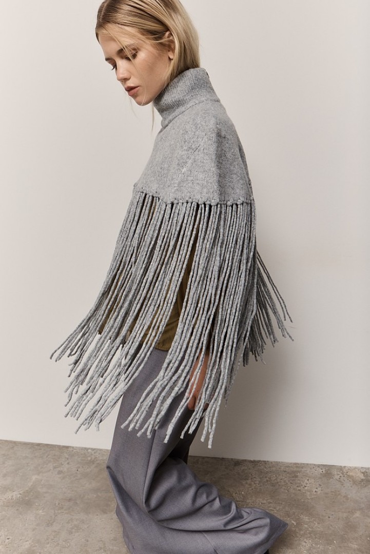 capa de cuello alto de lana con flecos DE BSB MODELO 054-362001