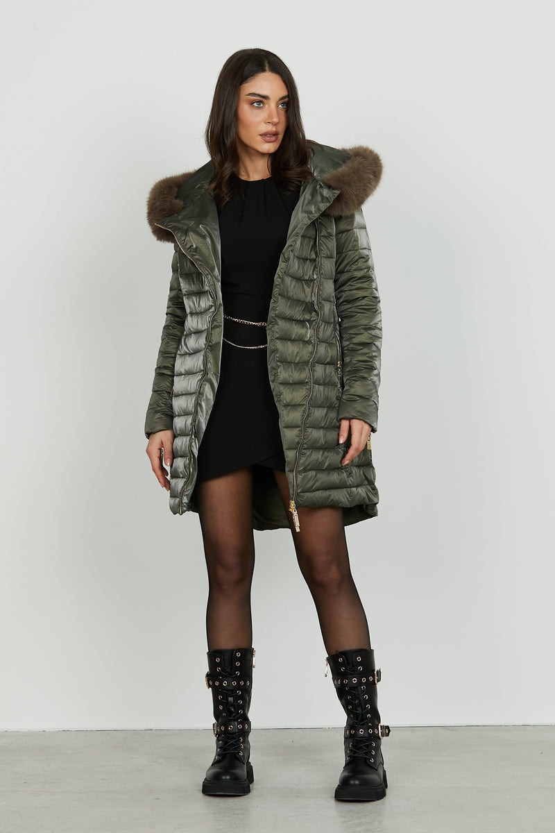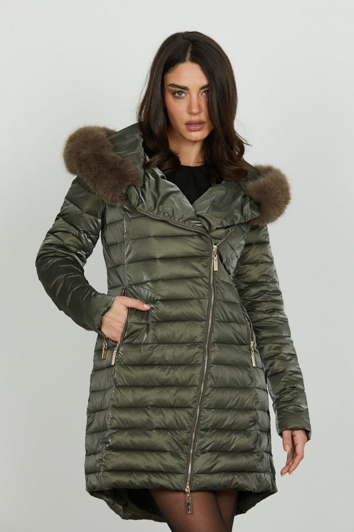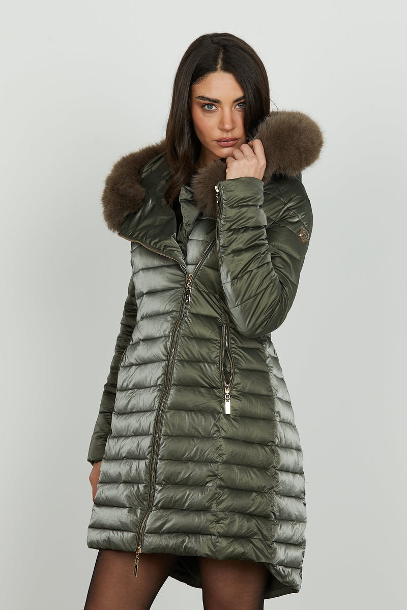 Afronta el invierno con determinación y glamour gracias a la chaqueta larga de plumón Diessam con acabado satinado. La cremallera transversal le da un toque urbano y chic, mientras que la capucha con pelo sintético desmontable te permite cambiar de look con un gesto. Bolsos prácticos, grandes y con detalles para exteriores que ofrecen comodidad, versatilidad y características únicas.