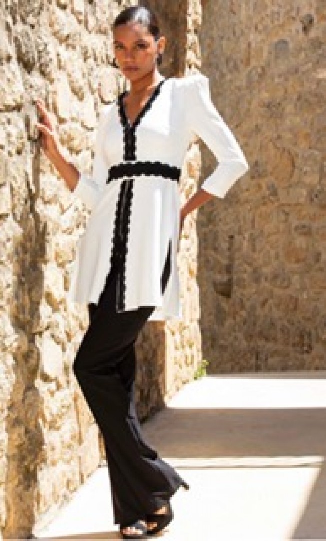 CONJUNTO DE PANTALÓN NEGRO Y CASACA CON CINTURÓN