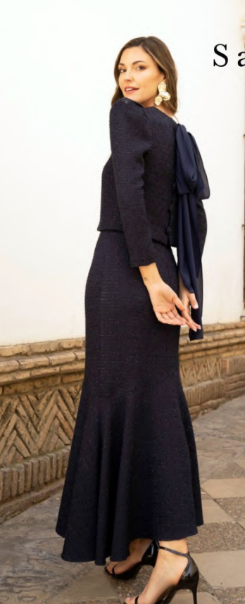 CONJUNTO TIPO CHANEL DE FALDA LARGA Y CUERPO CON LAZO ESPALDA