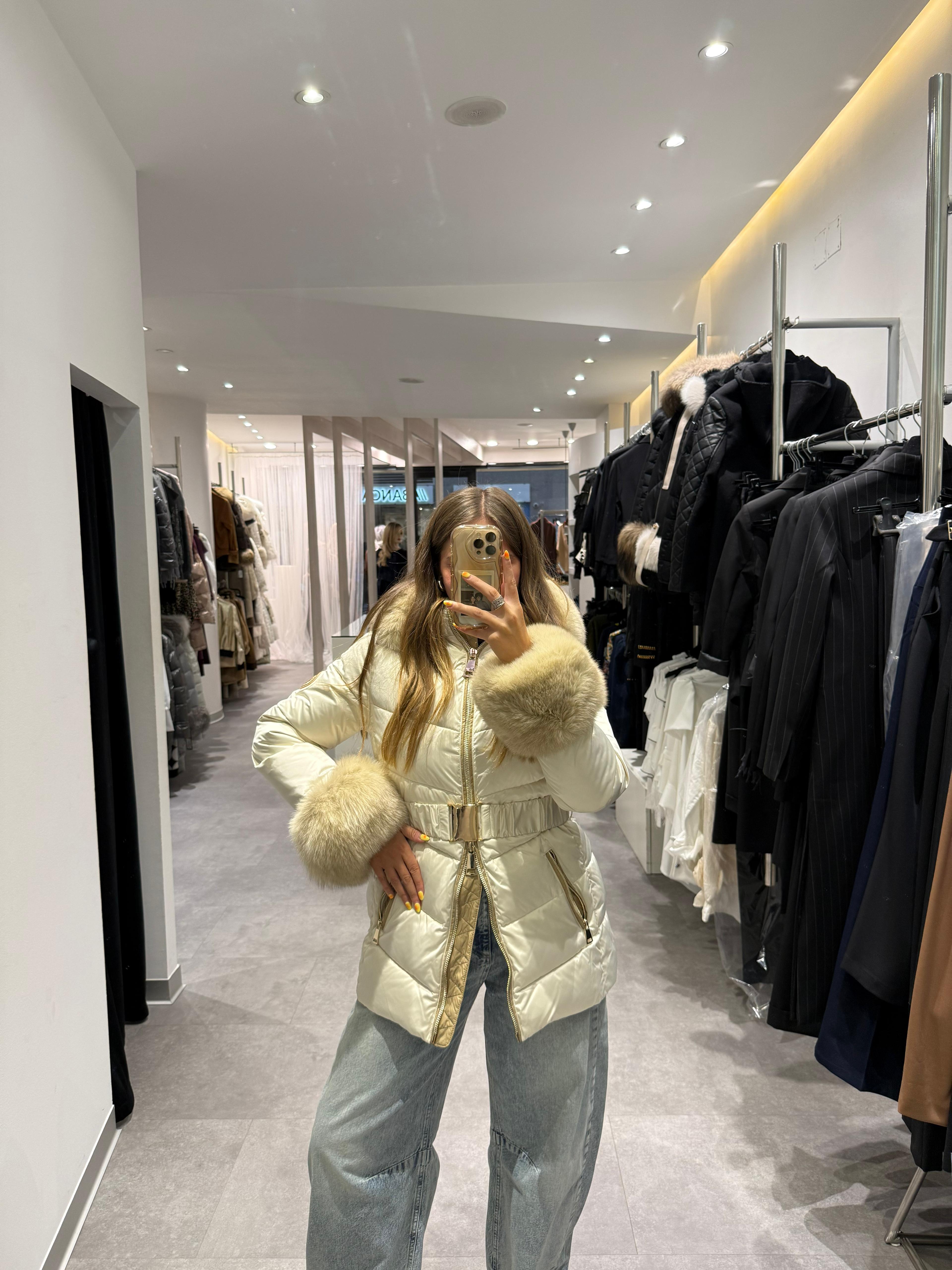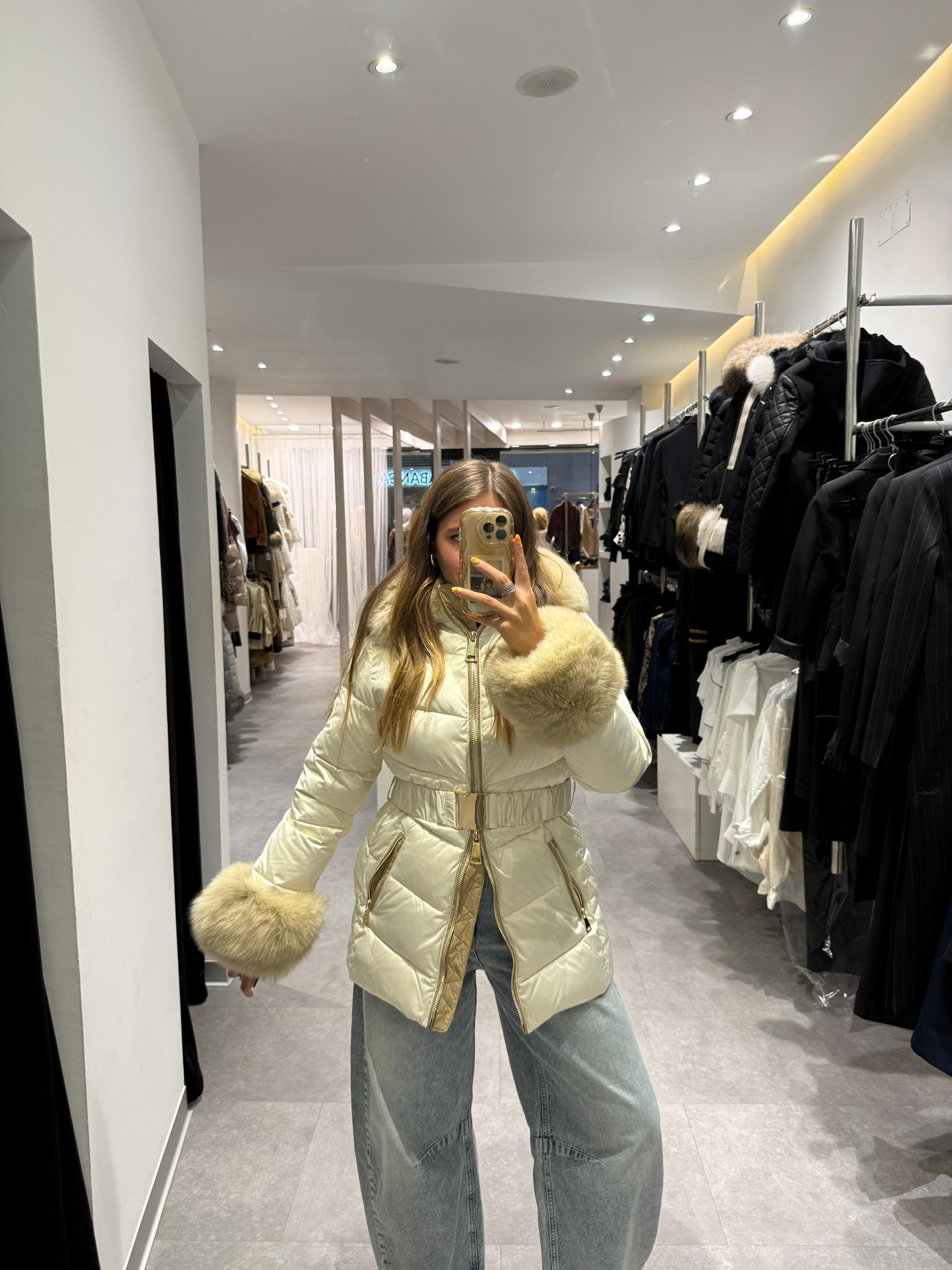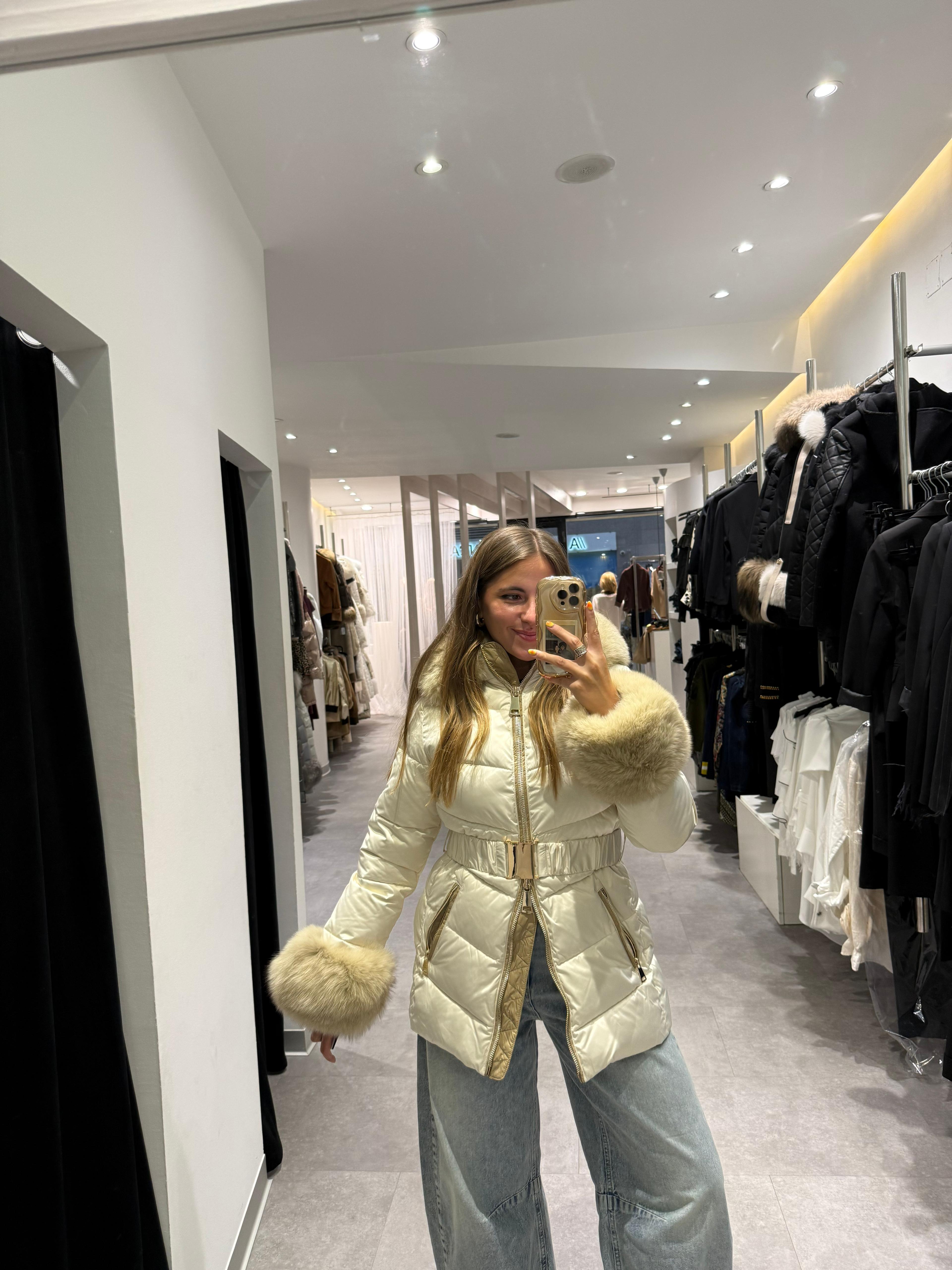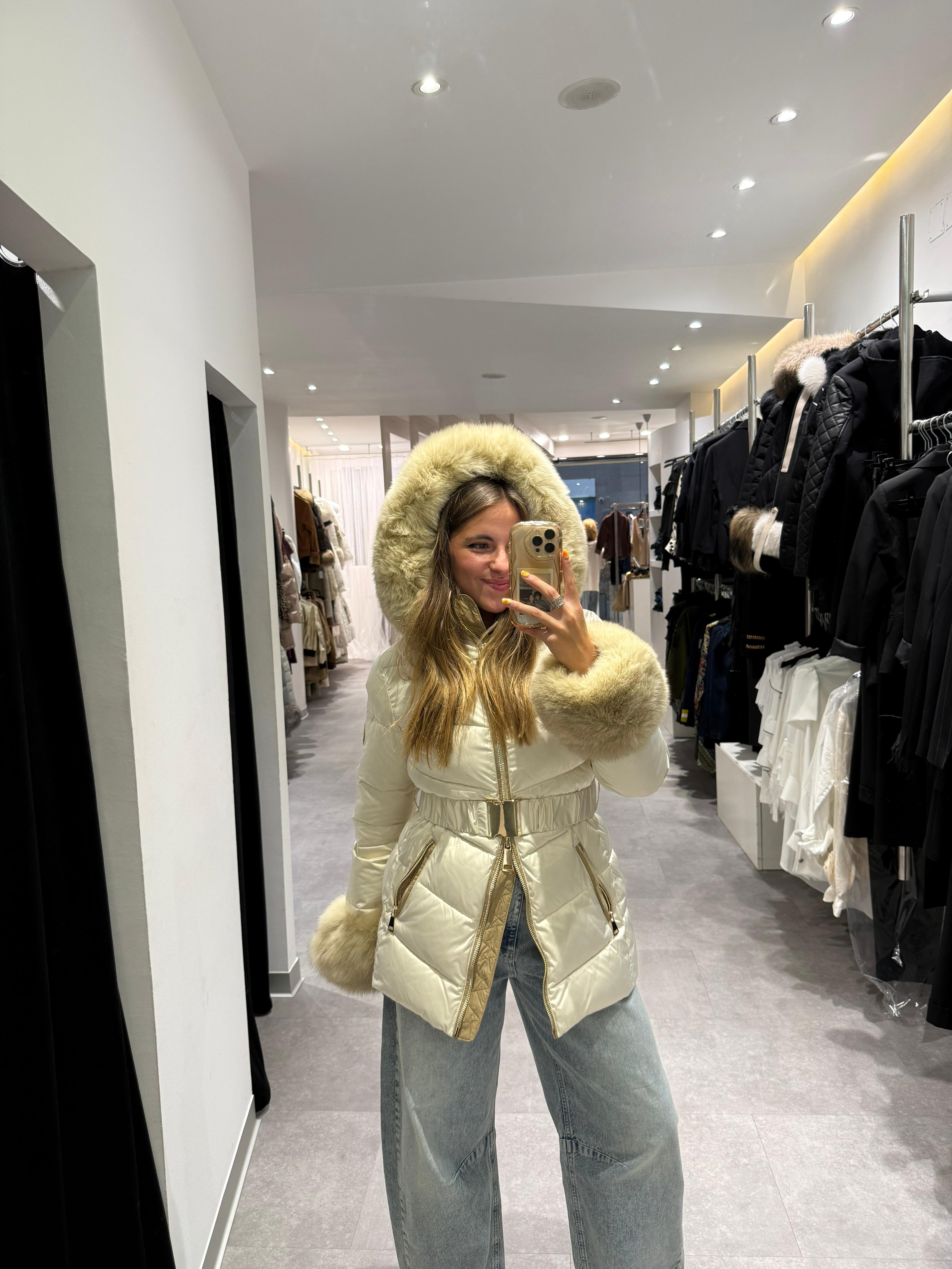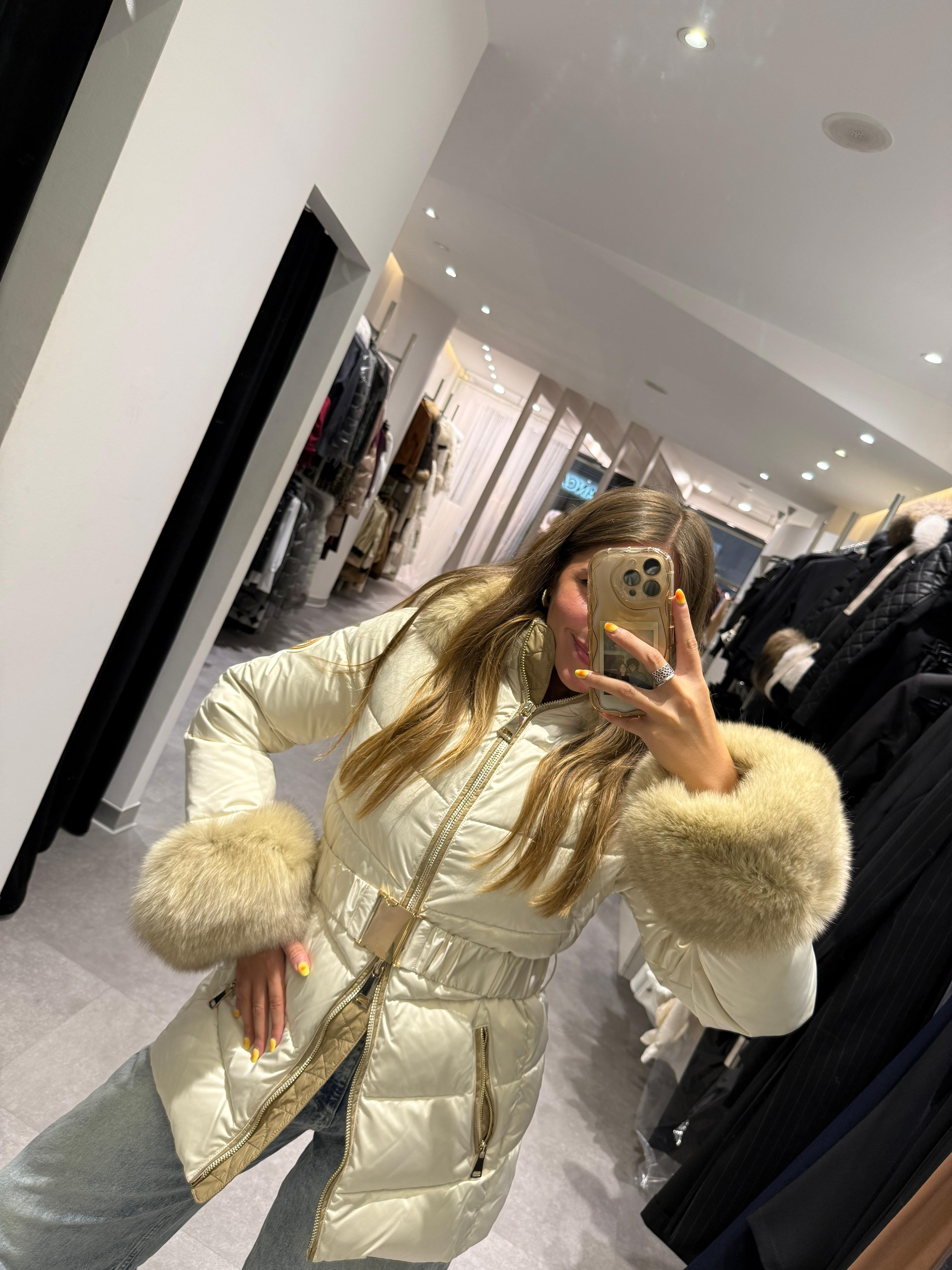 PLUMAS BEIGE CON CUELLO Y PUÑOS DE PELO NATURAL