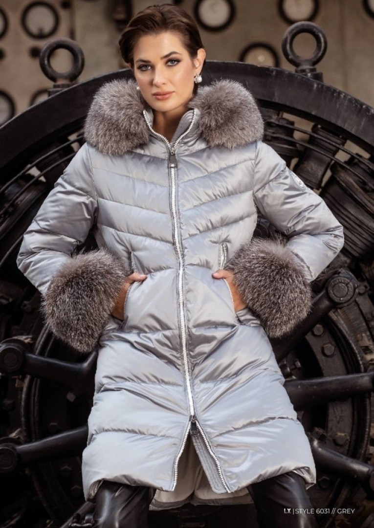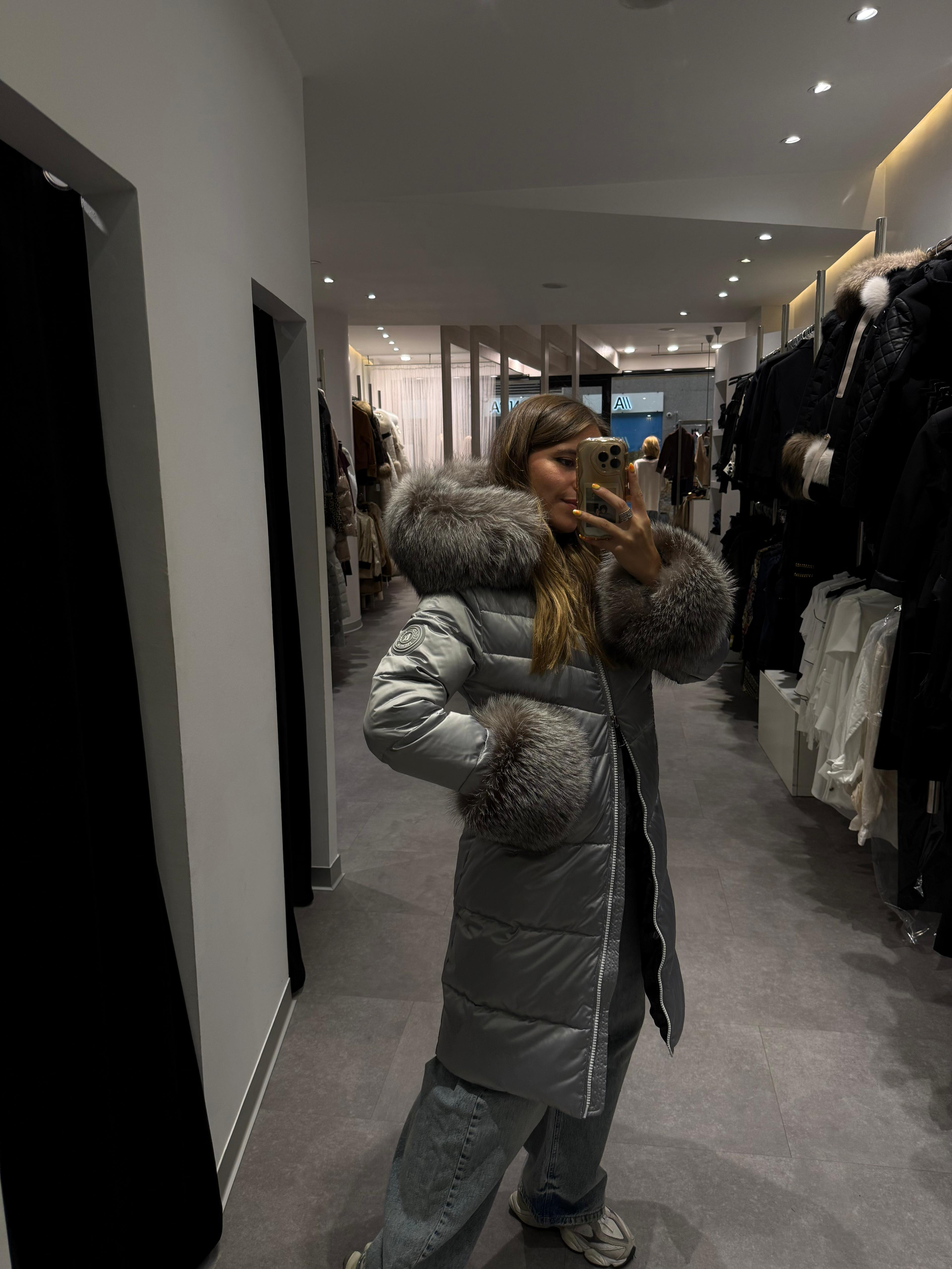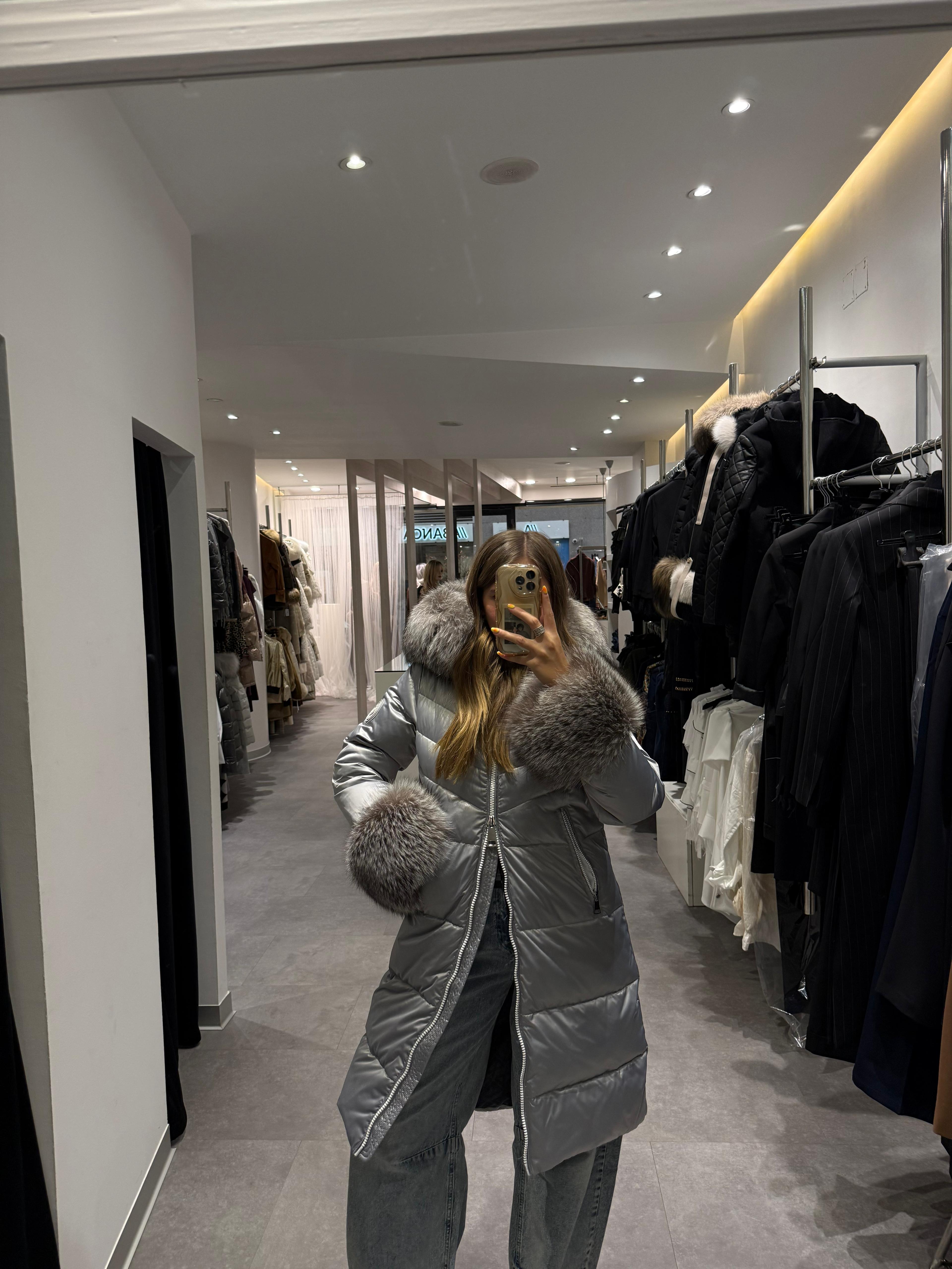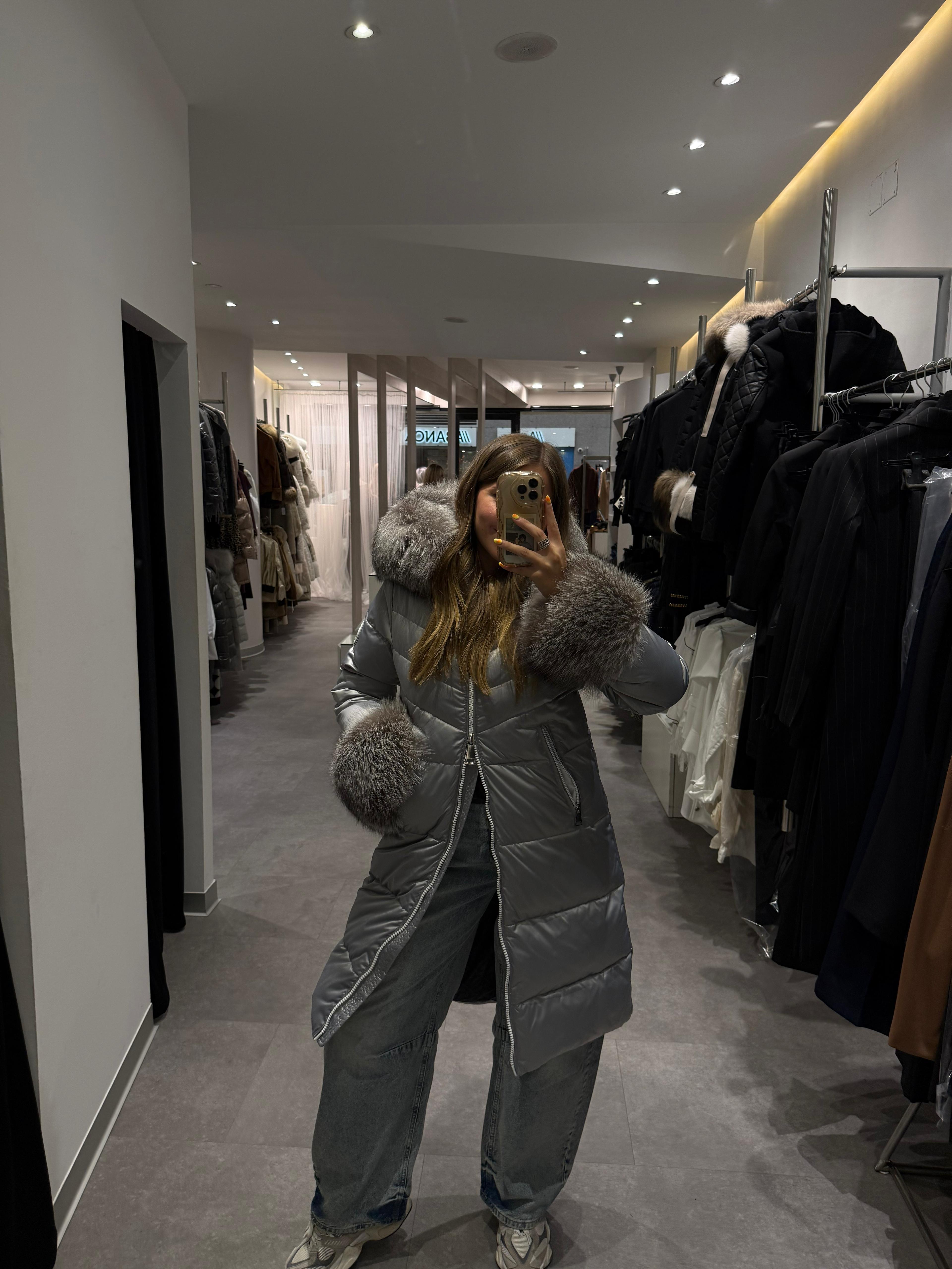 PLUMAS LARGO CON CUELLO Y PUÑOS DE PELO NATURAL