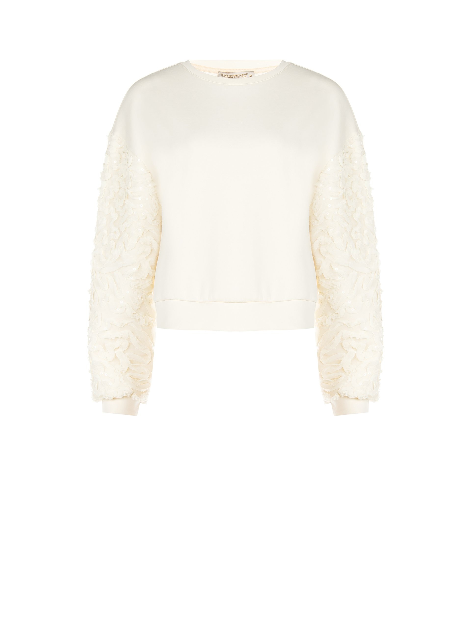 Sudadera con inserciones de tul ondulado y lentejuelas en las mangas.