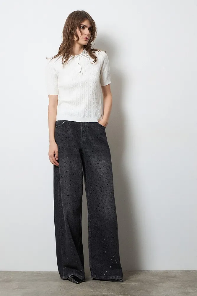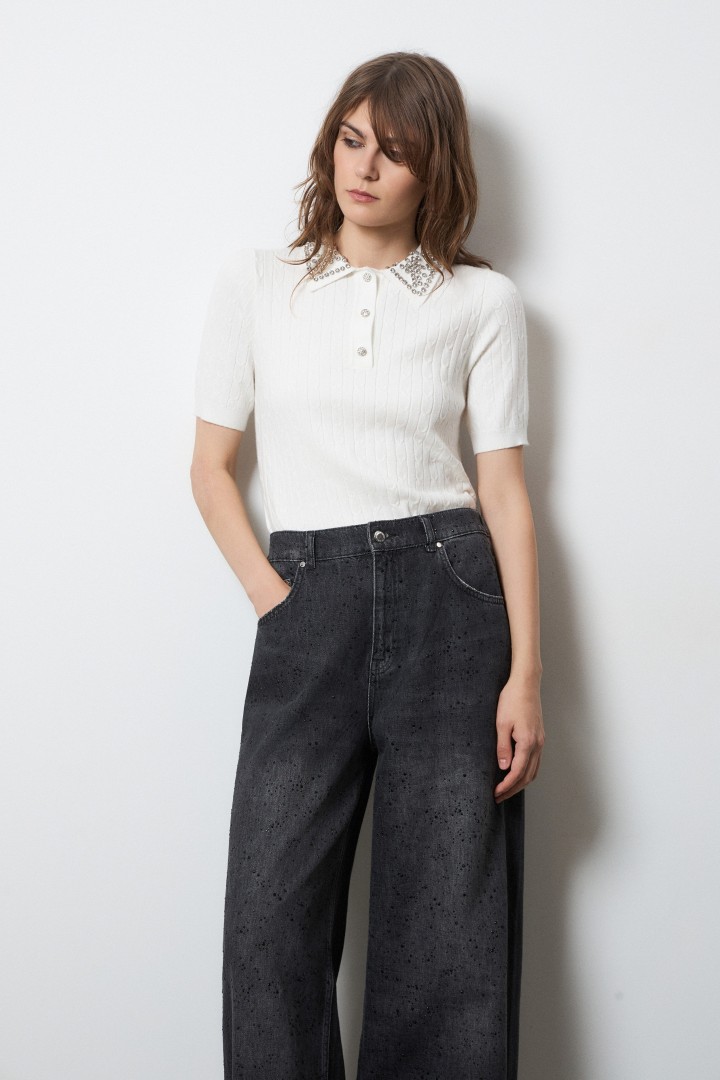 Suéter de manga corta con pedrería DE BSB 055-260020