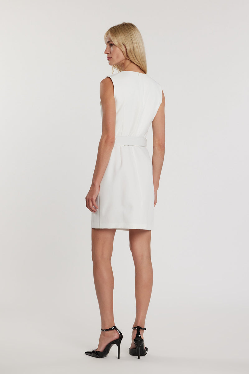 Vestido corto Alejandra sin efecto, mangas moteras DE RELISH falda color crema y cinturón: una prenda atrevida y moderna. La falda y el cinturón color crema definen la cintura con carácter, mientras que la línea con efecto motero le aporta un toque rebelde y contemporáneo, ideal para un look urbano y chic.