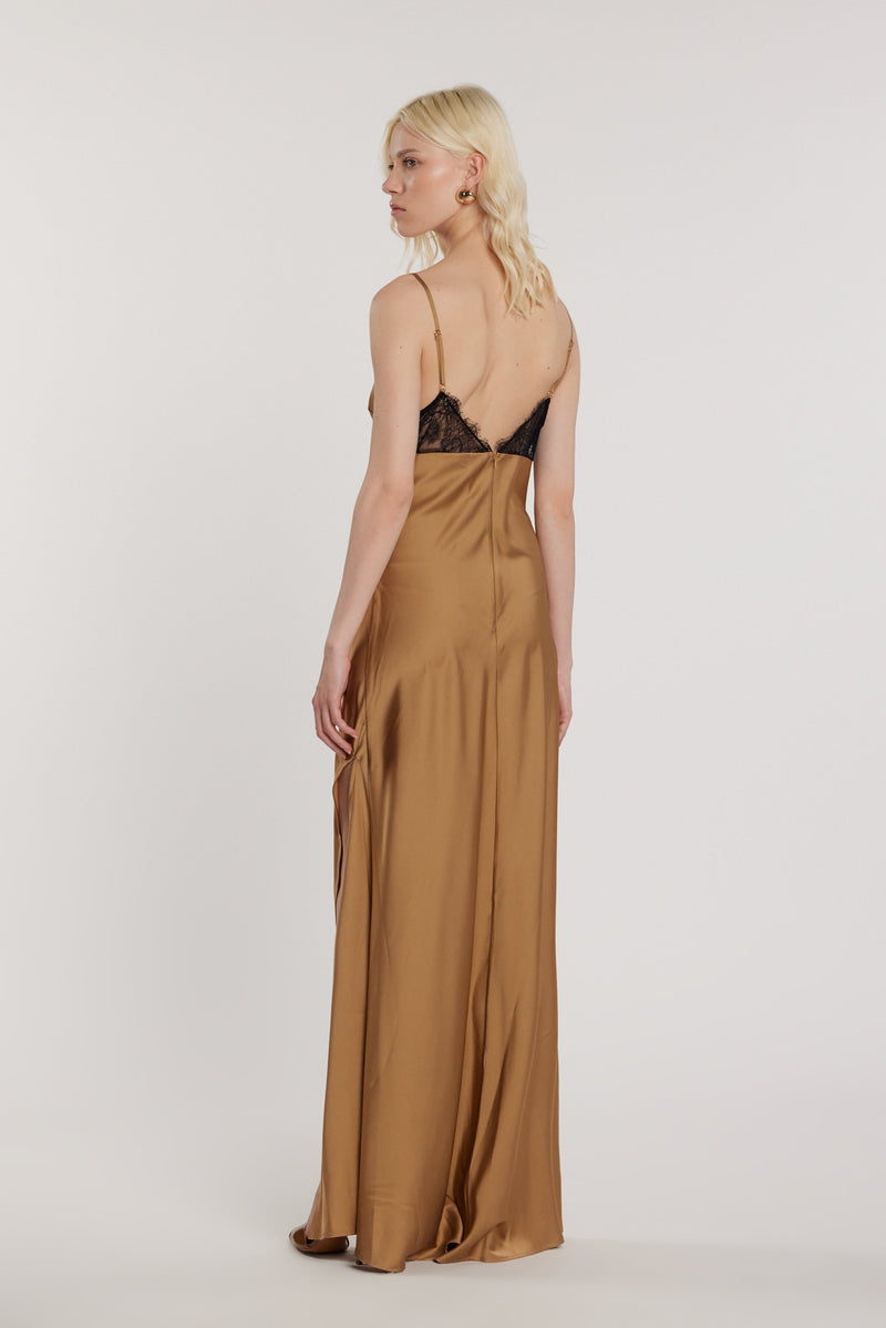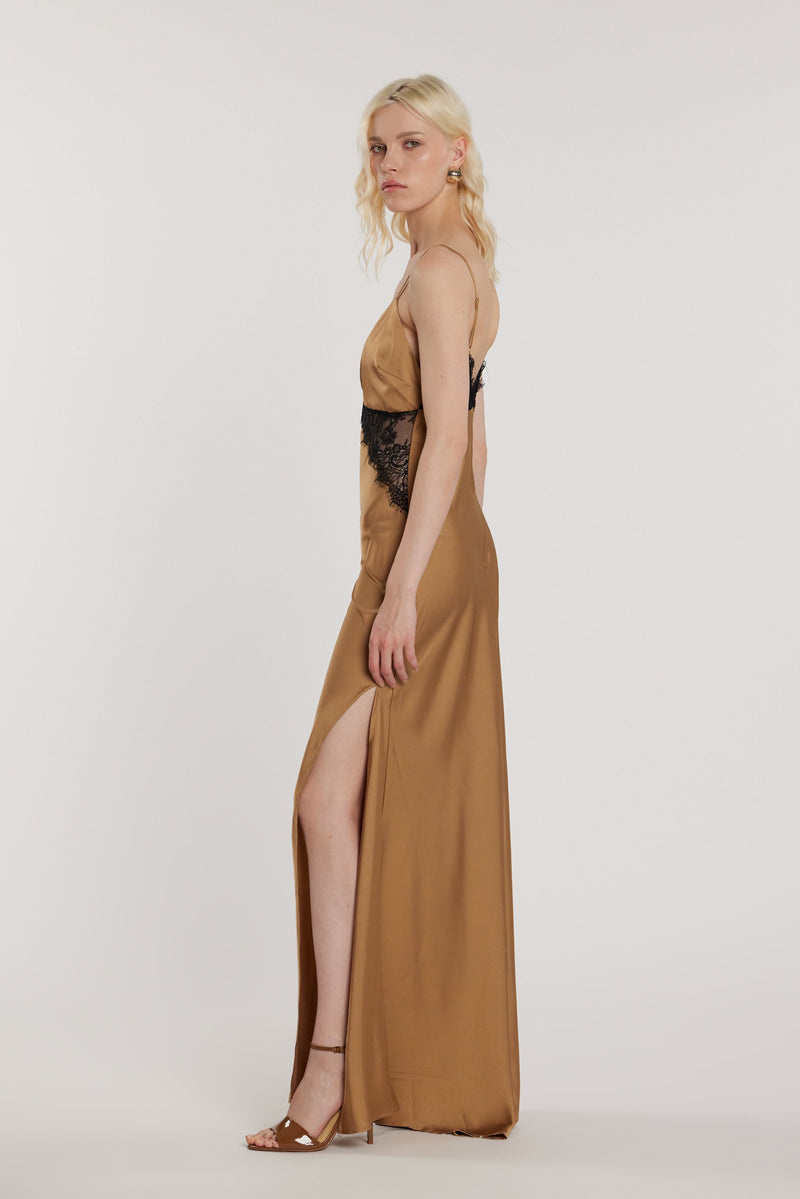 Vestido largo sin mangas KEIRA DE RELISH El vestido Keira, de corte holgado, con inserciones de encaje y abertura, es una prenda sofisticada y femenina. El encaje aporta elegancia y una sensualidad discreta, mientras que la abertura realza las piernas, ideal para ocasiones especiales y looks de alta costura.